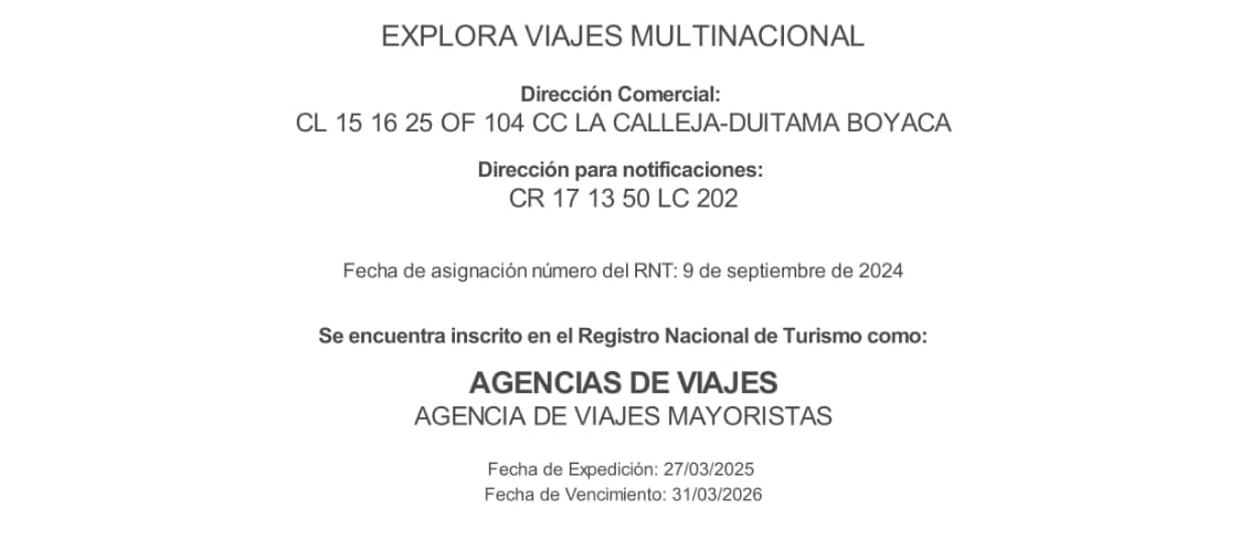 Certificados y autorizados para ofrecer planes turísticos en Colombia.